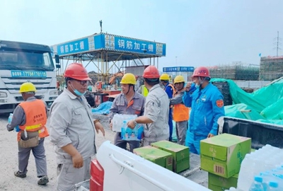 澆筑期間,正值高溫天氣,項目組采購了飲料、礦泉水等防暑降溫慰問飲品,為堅守一線的工人送去絲絲涼意,感謝他們的堅守與付出。