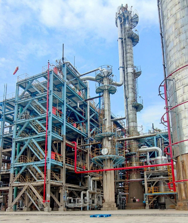 該項目位于浙江省寧波市鎮海化工園區,是依托原EO/EG裝置實施的擴能改造項目,將5萬噸/年環氧乙烷擴能至20萬噸/年,工程內容包括對EO/EG裝置精制系統及儲運系統的改造等。項目設計采用國內先進的設計手段,工藝技術為自主研發,整體工藝達到行業先進水平,產品指標均優于行業標準。項目在不改變原裝置占地的情況下實現產能提升,是綠色建造的最好體現,能耗指標處于國內先進水平。