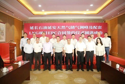 4月23日,延長石油延安天然氣儲氣調峰及配套LNG項目EPC總承包簽約儀式在西安舉行。延長石油煉化公司黨委書記、總經理烏忠理,副總經理馮奇國,項目建設指揮部黨委書記、指揮強挑戰,延長石油天然氣股份有限公司黨委書記、總經理高買華,北京石油化工工程有限公司(簡稱:北油工程)黨委書記、董事長許緘濤,紀委書記馬春寧出席簽約儀式。儀式由北油工程總經理助理、安全總監楊礫主持。