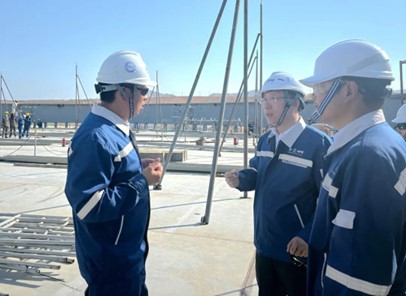 隨后,尹長炳趕赴Salalah油庫項目現場開展專項調研。該項目設計進度已超98%,進入收尾階段,土建施工與設備安裝工作全面鋪開。針對項目推進中的難點問題,尹長炳與現場施工團隊、設備安裝團隊及項目管理團隊深入座談,重點了解阿曼當地項目在技術標準、施工工藝、資源調配等方面與國內項目的差異。針對現場施工中遇到的特定技術問題,尹長炳現場協調設計團隊與施工團隊精準對接,共同研討優化解決方案,明確整改方向和時間節點,確保施工高效有序推進。