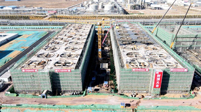 3月31日,由北京石油化工工程有限公司聯合體PC總包承建的1500萬噸/年煤炭分質清潔高效轉化示范項目烯烴、芳烴及深加工工程一階段給排水項目給排水消防裝置,順利完成全場閉式循環水冷水塔結構封頂,標志著核心配套工程土建施工取得階段性突破,為后續設備安裝及項目整體投產奠定堅實基礎。